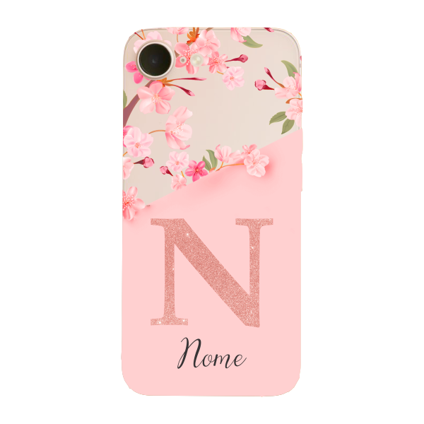 Capinha para iPhone 17e Anti Impacto Personalizada - Delicate Flowers Rosa com nome e fundo transparente