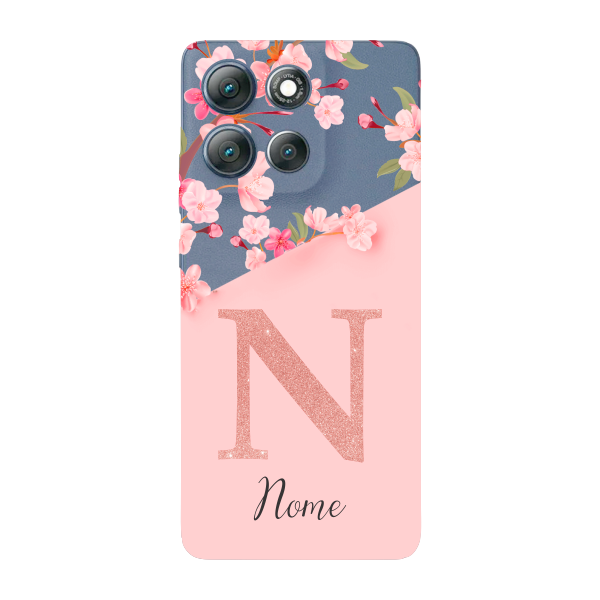 Capinha para Moto G86 Anti Impacto Personalizada - Delicate Flowers Rosa com nome e fundo transparente
