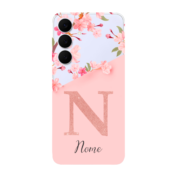 Capinha para Samsung S25 FE Anti Impacto Personalizada - Delicate Flowers Rosa com nome e fundo transparente