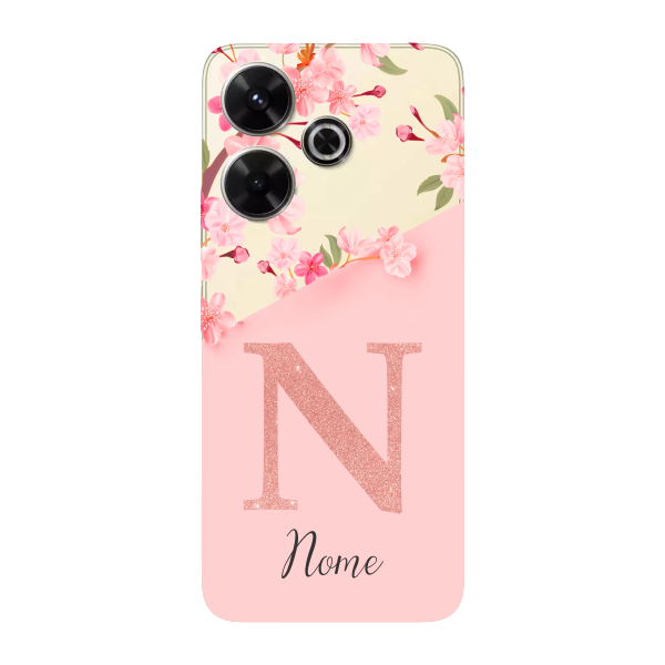 Capinha para Xiaomi RedMi 13 4G Anti Impacto Personalizada - Delicate Flowers Rosa com nome e fundo transparente